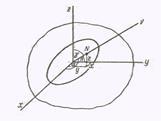 Рассмотрим изменение момента инерции , происходящее при изменении направления оси v т.е при изменении углов α, β, γ. Для наглядного изображения этого изменения отложим по оси v от точки О отрезок ON, длина которого Выразим направляющие косинусы оси v через координаты x, y, zточки N и длину отрезка ON: ; ; . Подставим cosα, cosβ, cosγ в выражение , подставили разделили на получили . Это уравнение определяет поверхность, по которой перемещается точка N, при изменении направления оси v при условии (ф-ла 123). Это уравнение представляет собой уравнение поверхности второго порядка. Эта поверхность является эллипсоидом, т.к. расстояния от всех точек N до точки О, определяемые формулой 123 всегда конечны. Этот эллипсоид называется эллипсоидом инерции. Центр эллипсоида находится в начале координат. Три оси эллипсоида называются главными осями инерции тела в точке О, а моменты инерции относительно этих осей- главными моментами инерции. Величины   называются центробежными моментами инерции соответственно относительно осей y и z, z и x, x и y.