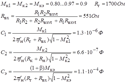 Расчёт значений ёмкостей С1,С2 и Сэ производятся по формулам: