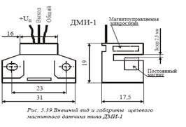 Широкое распространение в различных автоматических устройствах, установках производственного назначения, в измерительной и другой технике получили магнитные (герконовые) датчики. В настоящее время отечественная электронная промышленность разработала и производит серийно магнитные датчики ДМИ-1 и ДМИ-2 (рис. ), рассчитанные на широкое применение. Они предназначены для определения положения подвижного объекта, на котором укрепляют шторку - замыкатель из ферро-магнитного материала.