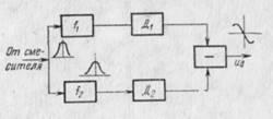 Разность этих частот определяет полосу пропускания дискриминатора. Напряжение, снимаемое с каждого из контуров, детектируется амплитудными детекторами Д1 и Д2.