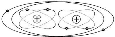 електрони, а два електрони обертаються навколо обох ядер водночас. Вони є начебто спільними для обох атомів і об’єднують їх в молекулу.