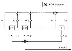 LFSR для свого функціонування використовує просту конфігурацію генератора 15-розрядного регістра зсуву (SSRG чи Фібоначчі).