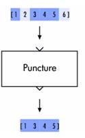 доповнює або відкидає значення у стовпцях для досягання розміру 288 біт. Якщо довжини на вході та виході рівні, блок інформації просто передається. Доповнення та усікання відбувається в кінці сигналу.