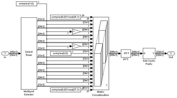 створює вихідний сигнал на основі відбору та перерозподілу вказаних елементів вхідного векторного сигналу за допомогою вектора елементів вхідного сигналу з індексами 240-243 та 204-239. На виході отримується 40 бітні повідомлення.