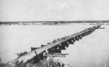 Після того, як лід сходив, це частіше було десь наприкінці травня, береги висихали, і у київських саперів з’являлась можливість встановити понтонний міст. Частіше за все його ставили на Наводницькій переправі (яку можна вважати матір’ю моста Патона, бо вона стояла саме на його сучасному місці). З обох берегів натягувався міст, саме натягувався, а не споруджувався, і за допомогою плотів його „випливали” на потрібне місце, а там вже за допомогою якорів закріплювали.(фото1)
