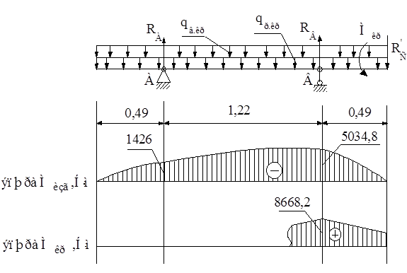 При расчете щита на прочность рассматривают первый и третий случаи нагружения дозатора. Для первого случая принимают следующую расчетную схему: щит как двухконсольная балка, на длине которой действуют равномерно распределенные нагрузки [1]: