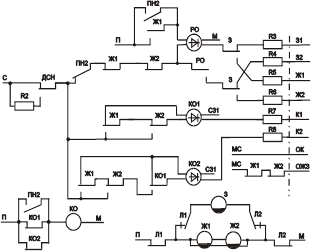 К, ОК ‑ цепь контроля перегона схемы смены направления;