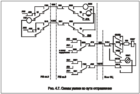 К особенностям построения электрических схем следует отнести дублирование основных реле и использование принципа двухполюсного размыкания при реализации схемных зависимостей.