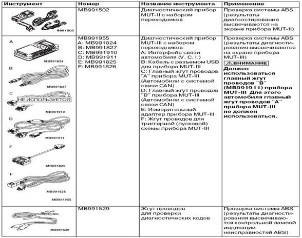 2. В этом случае рекомендуется использовать специальный инструмент - жгут проводов для проверки диагностических кодов (МВ991529) для соединения на "массу" клеммы 1 (клемма диагностического контроля) диагностического разъема.