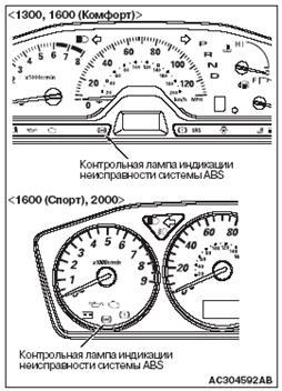 При использовании контрольной лампы индикации неисправности ABS