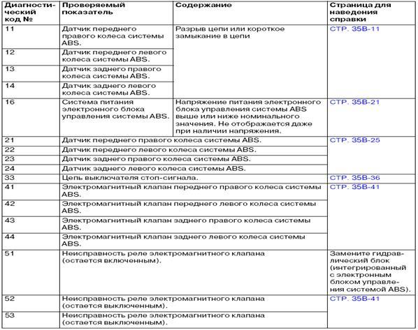 4.6. МЕТОДИКА ПРОВЕРКИ ДИАГНОСТИЧЕСКИХ КОДОВ ЭЛЕМЕНТОВ СИСТЕМЫ ABS.(Автомобили с правым рулем)