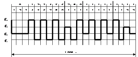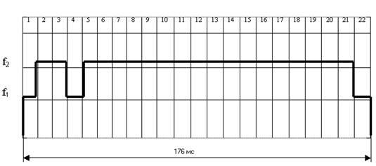 Более высокая рабочая частота f2и соответствует передаче символа 0.