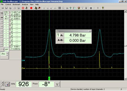 Напруга по всіх циліндрах рівномірно й дорівнює 40-45 кВ (15 мм). Справна система запалювання.
