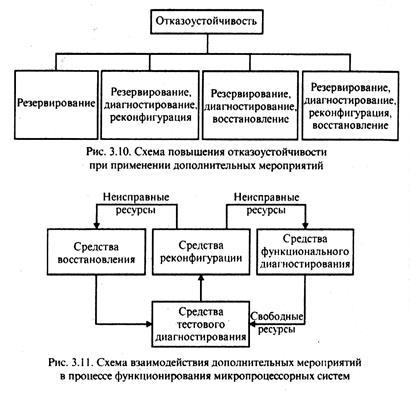 Отказавшие элементы заменяют на исправные по результатам функционального диагностирования, т.е. по факту отказа. Тем самым кратность резервирования доводится до первоначальной. В отличие от этого профилактическая замена проводится после истечения срока службы элемента или межремонтного срока. Отличительной особенностью здесь является то, что такая замена выполняется независимо от всех других мероприятий по обеспечению отказоустойчивости. Профилактическая замена позволяет поддерживать некоторое постоянное значение интенсивности отказов элементов. Что касается ремонта элементов, то можно отметить, что здесь эффективно применение средств тестового диагностирования.