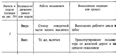 На мал. 1 показане розташування важелів і педалей на пультах керування екскаваторів ЭО-5123. У табл. 1 пояснені функції цих важелів. Якщо на екскаваторах встановлене інше устаткування, призначення деяких важелів змінюється.