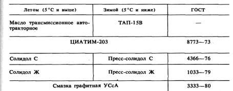Варто застосовувати оливу й змащення тільки ті, які зазначені в таблицях змащування (табл. 3 і 4, мал. 4.1, 4.2 ). Застосування інших сортів може вивести машини з ладу.
