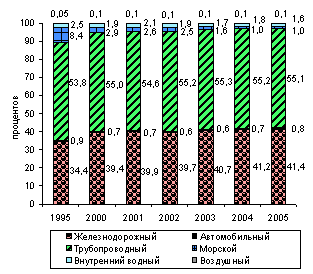 2.1. Графики структуры грузооборота транспортного комплекса России