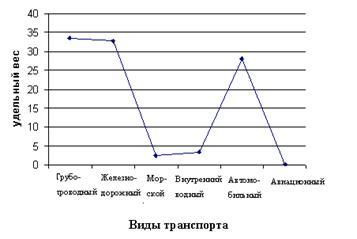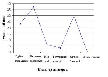 Удельный вес различных видов транспорта в грузоперевозках Российской Федерации