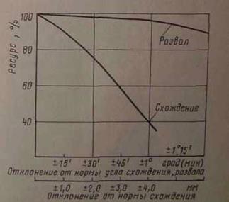 К числу наиболее распространенных неисправностей переднего моста относится нарушение углов установки колес. Конструктивно у грузовых автомобилей и автобусов предусмотрена регулировка только угла схождения, у легковых - углов развала продольного наклона шкворни (оси поворота), соотношения углов последовательность является технологически необходимой. Несоблюдение ее приводит к нарушению ранее отрегулированного угла.