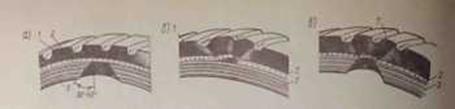 по мере уменьшают. Чем больше будет сделано кругов (цепочек), тем успешнее будет сглаживание. При нескольких близкорасположенных выпуклых местах (рис. 1.2.3 г) вначале растягивают участок между ними и сводят их в одну выпуклость, а затем в зависимости от формы получившейся выпуклости определяют место в направлении дальнейшей растяжки.