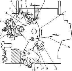 С увеличением разрежения под дросселем первой камеры мембрана / будет воздействовать на шток 3 и принудительно приоткрывать воздушную заслонку. Величину приоткрывания (пускового зазора h= 2,5...3,2 мм) заслонки можно регулировать винтом 2. Величина приоткрывания зависит от ширины паза между кромками 5 и 6 рычага 4 и от положения регулировочного винта 2.