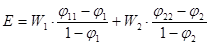 Общий эффект сепарирования Е определяется как средневзвешенная степень обогащения обеих фракций :