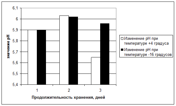 При температуре хранения +4 °С рН мяса курицы, говяжьего фарша, говядины увеличивается, а куриной и говяжьей печени – уменьшается.