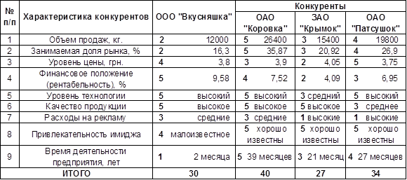 Таблица 4.1. – Конкурентоспособность питьевого йогурта