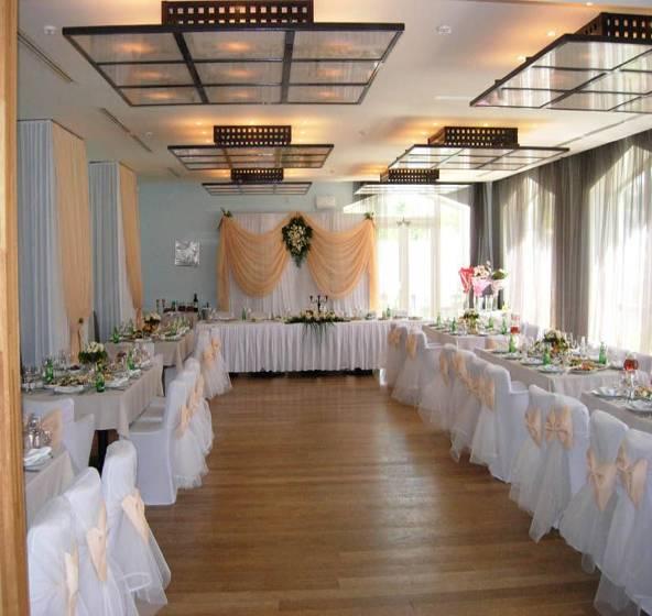 Ресторан має у своєму розпорядженні всі умови й для проведення святкових заходів на найвищому рівні: корпоративних свят, приватних вечірок, весіль, виїзних церемоній одруження. Тут вам допоможуть створити необхідну атмосферу для вашого торжества відповідно до ваших смаків, настрою і тематики. Банкетний зал