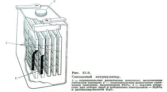 Электроды в нем представляют собой свинцовые решетки, из которых одна заполняется в порах порошком оксида свинца IV – PbO2. Электроды соединены с электролитом через пористый сепаратор. Всеь аккумулятор помещается в бак из эбонита или полипропилена.
