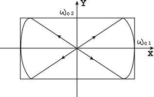 4) , то результуюче коливання відбувається по складній траекторії, форма якої залежить від різниці фаз і співвідношення частот.