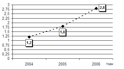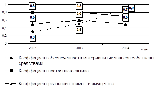 Показатели маневренности собственного капитала в 2004, 2005 и 2006 году был в пределе оптимального значения, от 0,2 до 0,5, значит, финансовое состояние предприятия хорошее.