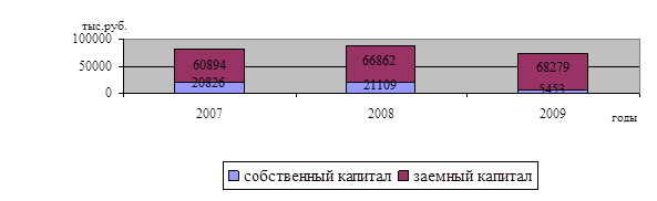 Таблица 1.1. - Собственный и заемный капитал предприятия ОАО «Нефтекамск-Лада-Сервис» за 2007-2009 гг