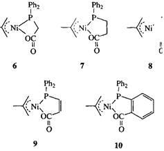 Комплексы 6-8 содержат пяти – семичленные хелатные циклы. В комплексах 9 и 10 жесткого хелата увеличивается при введении в него соответственно двойной связи или ароматического цикла. Исследование реакции комплексов 6 с этиленом показало, что комплексы 6, 9, и 10 вольно активны в линейной олигомеризации, в то время как активность комплексов 7 и 8, содержащих гибкие шести- и семичленные циклы, невысока.