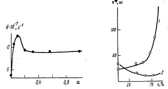 Рис. 1. Зависимость 9=(1/т) макромолекул ПАК в водных растворах от степени ионизации карбоксильных групп ПАК при 25°