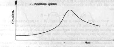 Існує і інший тип росту чисельності популяції, коли експоненціальний ріст продовжується до раптового зменшення кількості організмів (рис. 2).