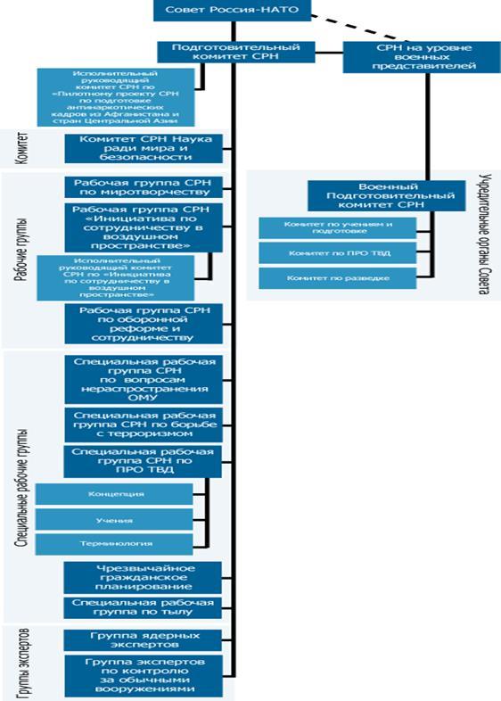 Одним из первых шагов в этом направлении стало создание в 1991 г. Совета североатлантического сотрудничества. Затем он был переименован в Совет евроатлантического партнерства и превратился в главный форум для консультаций и сотрудничества между НАТО и странами Евроатлантического региона, не входящими в НАТО[16]