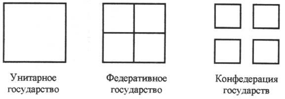Различие между унитарным государством, федерацией и конфедерацией наглядно проиллюстрировал американский политолог Д. Найс (см. Приложение).