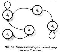 )}. В цій системі, орієнтований граф топології якої наведено на рис. 1.1., з’єднання, що відповідає парі вершин), забезпечує передачу інформації про поточну звертальну шпальту видання на дублікатор, який забезпечує друкування цієї шпальти заданим накладом. З’єднання (b2