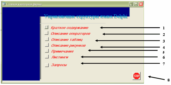 (Літературне джерело: “Культин Н.Б. Основы программирования в Delphi 7. – СПб.: БХВ-Петербург, 2003. – 608 с.: ил”. Розділ: “Глава 2. Управляющие срук-туры языка Delphi”, сторінки: 85–123)
