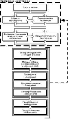 Под задачами мы понимаем конкретные действия или этапы на пути достижения цели. В любом случае, задачи подчинены целям. В рамках грамотно составленной программы не может быть задач, выходящих за пределы цели, не имеющих к ней отношения и т.п. Эффективность экологического мониторинга решающим образом зависит от правильной его организации. Можно годами вести мониторинг в регионе - и не получить значимых результатов. В то же время, предварительное изучение ситуации, анализ возможных воздействий позволяют с помощью нескольких измерений выявить проблему. Общая последовательность разработки и осуществления схемы мониторинга представлена на рис.1.2.1.