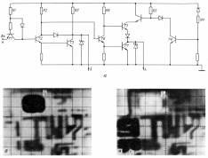 Рис.11. Фотоответное изображение транзисторов при прямом (а) и обратном (б) смещении и фотоответное изображение активных элементов триггера (в)