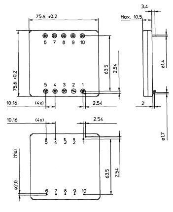 Габаритные размеры модуля должны приблизительно соответствовать габаритным размерам модуля PKE 4411 PI (д×ш×в = 75,6×75,6×10,5) мм.
