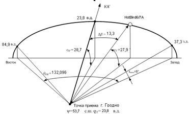 4 РАСЧЁТ ПАРАМЕТРОВ ПЕРЕСТРОЙКИ И НАВЕДЕНИЯ АНТЕННЫ НА ЗАДАННЫЙ ИССКУСТВЕННЫЙ СПУТНИК ЗЕМЛИ