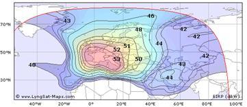 = 48 дБВт и ИСЗ 2 Eurobird 9 (φМ2