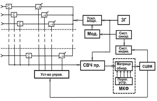 Применительно к активному методу радиолокации, гибким методом обзора и рассмотренных принципов построения структурных схем СОЦ и ССЦ, структурная схема МРЛС может иметь вид представленный на Рис.8.