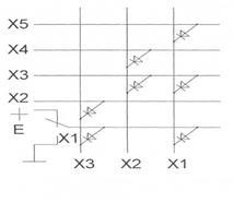 Матричные дешифраторы состоят из 2 логических схем совпадения (И), каждая из которых имеет n входов. На входы подаются все возможные комбинации прямых и инверсных разрядов дешифрируемого числа X. Пример матричного дешифратора 3x8 приведен на рис. 1.