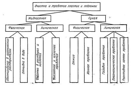 Рисунок 1 Классификация методов очистки и травления пластин и подложек