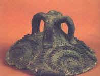При раскопках были найдены две терракотовые фигурки фравашей, оттиснутые в формах. Лица у них горбоносые с миндалевидными глазами. В ушах серьги, головы увенчаны коронами.