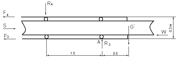 2. Горизонтальне – визначаємо реакції, виникаючих від шарнірів (роликів) в горизонтальній, площині при поперечному ухилі колійної решітки (рисунок 3.4).